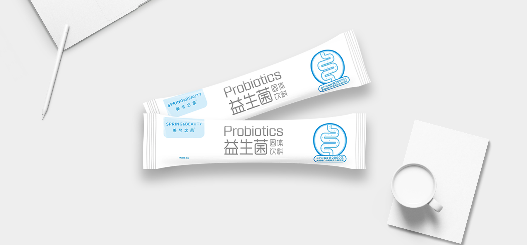 益生菌固體飲料在線下十分的流行,墨香廣告為美兮之泉全案策劃了一款繼膠原蛋白之后的又一爆款產(chǎn)品的包裝設計。